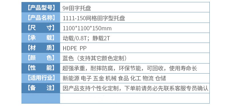 本店產(chǎn)品常規(guī)庫存為全新料藍(lán)色塑料托盤,周轉(zhuǎn)箱,周轉(zhuǎn)籮,化工桶,中空板材及部分高性價比黑色一次性出貨產(chǎn)品。如需要其他顏色請聯(lián)系客服對接處理。因產(chǎn)品規(guī)格較多,未能全部上至店鋪,如店中沒有您需要的規(guī)格尺寸也請聯(lián)系客服。希望能解決您的問題,我們竭誠為您服務(wù)!!!